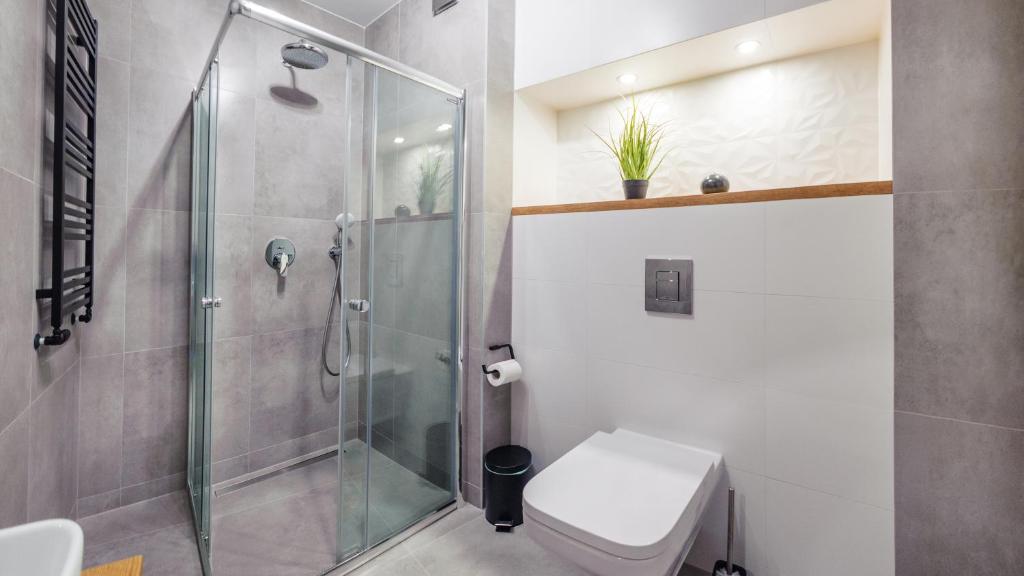 Apartament z 1 sypialnią. This air-conditioned apartment consists of 1 living room, 1 separate bedroom and 1 bathroom with a shower. Guests can make meals in the kitchenette that is equipped with a stovetop, a refrigerator, a dishwasher and kitchenware. This apartment features a coffee machine, a dining area, a flat-screen TV and a balcony. The unit offers 2 beds. Apartament - 4 osobowy. Powierzchnia pokoju ok.: 34 mkw.