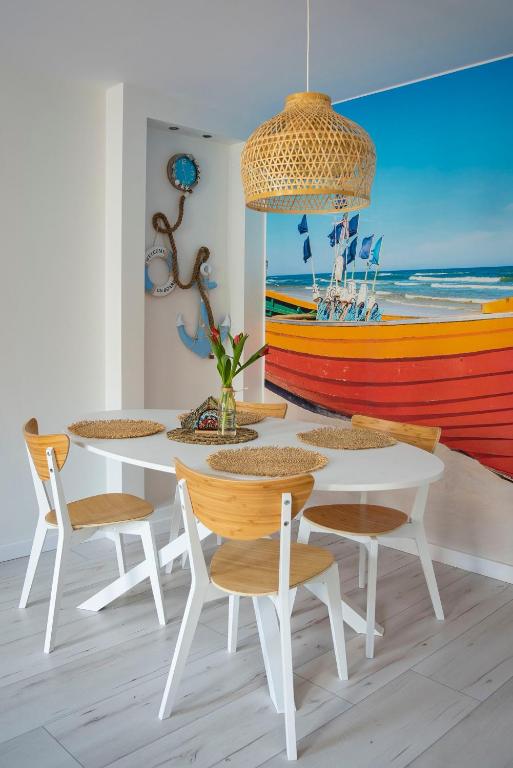 Apartament z 2 sypialniami. This apartment includes 1 living room, 2 separate bedrooms and 1 bathroom with a shower and a hairdryer. The well-equipped kitchen has a stovetop, a refrigerator, kitchenware and an oven. Boasting a balcony, this apartment also offers a washing machine, a dining area and a flat-screen TV. The unit has 4 beds. Apartament - 4 osobowy. Powierzchnia pokoju ok.: 58 mkw.