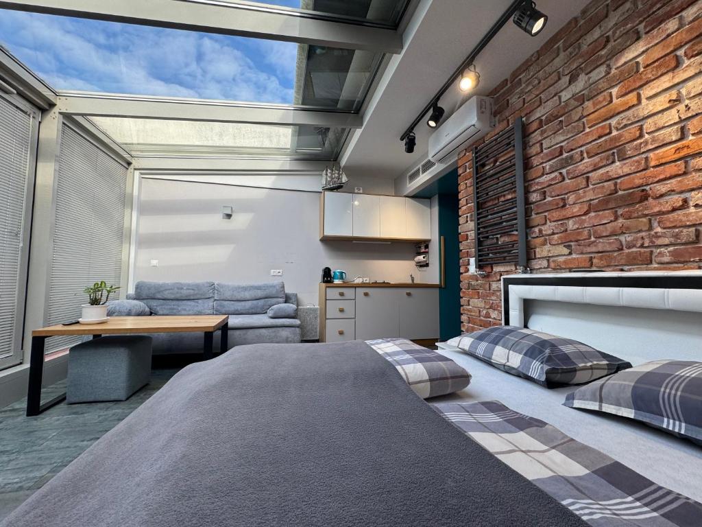W apartamencie zapewniono sypialnię (1), łazienkę (1), pościel, ręczniki oraz aneks kuchenny z pełnym wyposażeniem. Do dyspozycji Gości jest także telewizor z płaskim ekranem z dostępem do kanałów kablowych oraz taras z widokiem na miasto.
