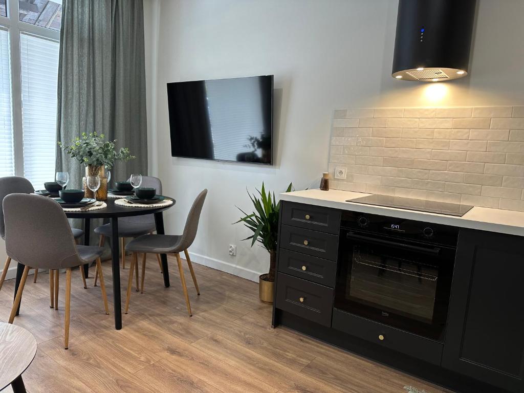 Dom z 2 sypialniami. Guests will find a stovetop, a refrigerator, a dishwasher and kitchenware in the fully equipped kitchen. The holiday home also provides guests with a barbecue. This holiday home is air-conditioned and features a seating area with a flat-screen TV, a private entrance, a dining area, a wardrobe, as well as an electric kettle. The unit offers 2 beds. Dom wakacyjny - 4 osobowy. Powierzchnia pokoju ok.: 70 mkw.